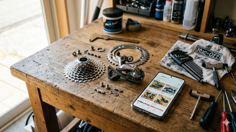 新品パーツが高騰している現在、実は「中古パーツの需要」も信じられないくらい高まっています。メルカリやヤフオクなどのフリマアプリに出品すると、綺麗に掃除して写真をしっかり撮れば、シマノのコンポーネント(特に105やティアグラ、消耗の少ないSTIレバーなど)なら良い値段ですぐに売れてしまいます。