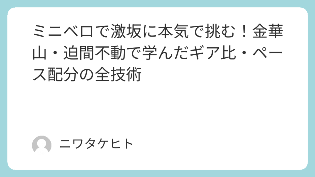 ミニベロで激坂に挑むのは無謀じゃない。ただ、ロードバイクと同じ感覚でやろうとすると確実に詰む。ミニベロならではのアプローチで挑めば、あの達成感は格別だ。